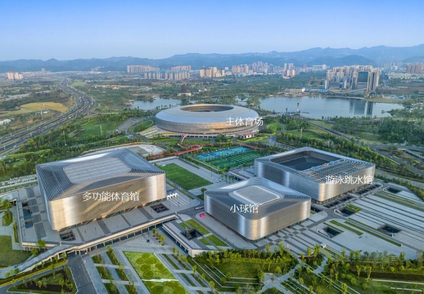 主体育场、多功能体育馆、小球馆、游泳跳水馆