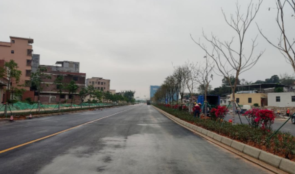 国际冷链物流项目周边道路工程位于花都区花东镇四联村国际冷链物流中心地块西侧和南侧,南起于规划花侨大道,北止于山前旅游大道,含3条市政道路,总长约1.5公里。本项目是国际冷链物流中心的主要出入道路,为满足玉湖冷链交易中心今年正式投产的通行需求,该项目按目标节点倒排工期,全力推进。