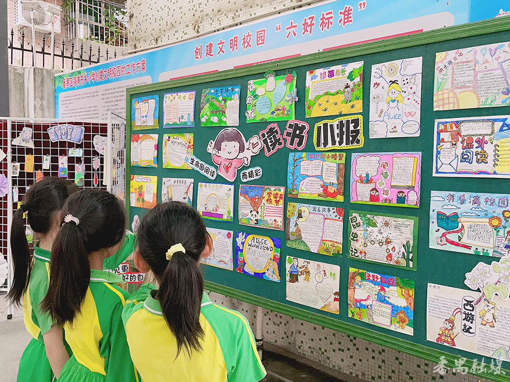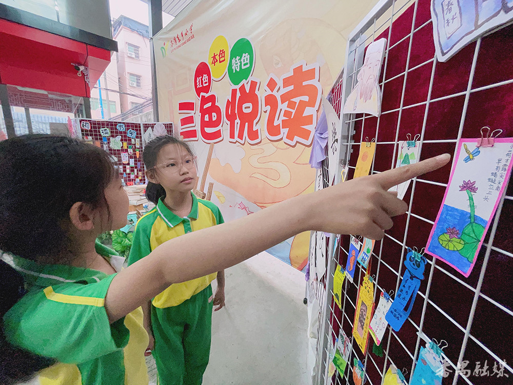 “‘三色礼乐文化’是学校三张亮丽的名片。”校长詹炳成说,学校从特色文化(朗诵文化)开始,在本色文化(龙舟文化)中沉淀,在红色文化(思政教育)中升华,以“三色悦读”为主题,成立了“三三读书共同体”,班级成立读书会、年级成立读书社、学校成立读书联盟,每月举行分享会。同时,成立了三个朗诵队伍:学生朗诵队、家长朗诵队、教师朗诵队,学生每周一集训、家长和教师每月一集训,并举行专场读书节、艺术节表演,还会进行“书香家庭”的评选活动。