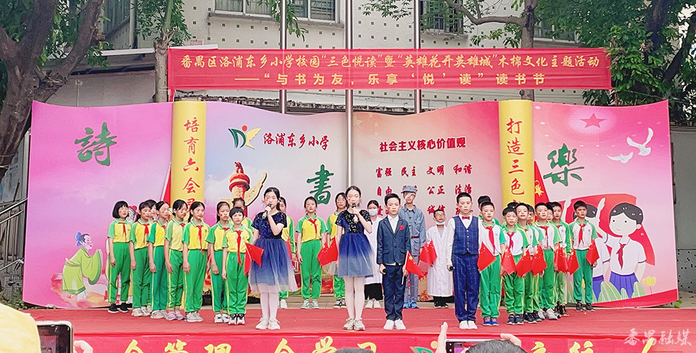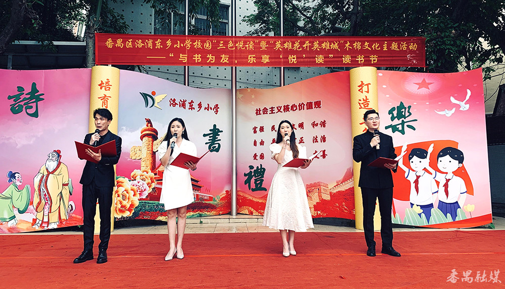 近年来,洛浦东乡小学大力推进书香校园建设,营造浓厚阅读氛围,引导激励全体师生爱读书、读好书、善读书,学校去年获得“广州市智慧读书实验校”称号。此次的“三色悦读”暨“英雄花开英雄城”木棉文化主题朗诵展演活动也是学校打造“三色礼乐文化”的其中一部分。