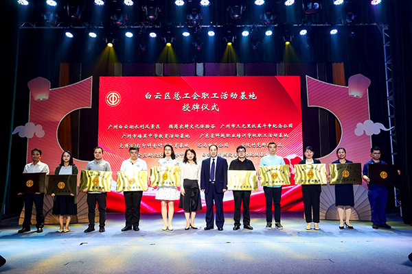 总决赛现场还为经过企业单位自评、上级工会推荐、区总工会复评,符合职工活动基地挂牌标准的广州白云湖水利风景区、鸦岗农耕文化体验谷、广州市三元里抗英斗争纪念公园、广州市培英中学教育活动基地、广东省科越职业培训学校职工活动基地、文博3D打印科普研学教育基地、石马桃花公园、头陂村党群服务站、白云区助农党群服务中心、白云区自然灾害应急救援基地共10个基地进行授牌。