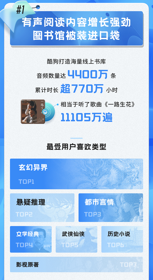 即日起登录酷狗音乐APP,搜索“听书报告”即可查看完整内容。