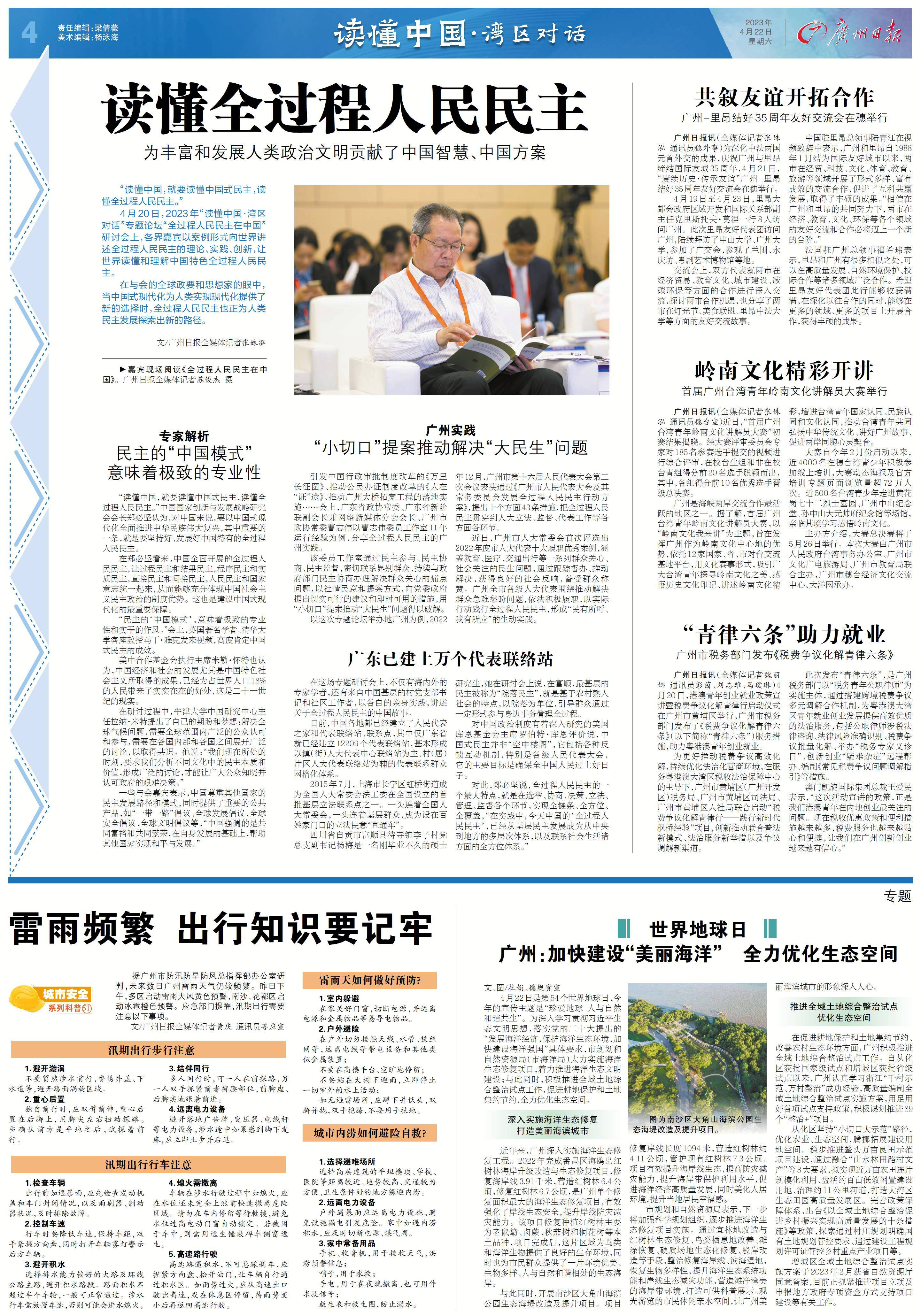 以这次专题论坛举办地广州为例,2022年12月,广州市第十六届人民代表大会第二次会议表决通过《广州市人民代表大会及其常务委员会发展全过程人民民主行动方案》,提出十个方面43条措施,把全过程人民民主贯穿到人大立法、监督、代表工作等各方面各环节。