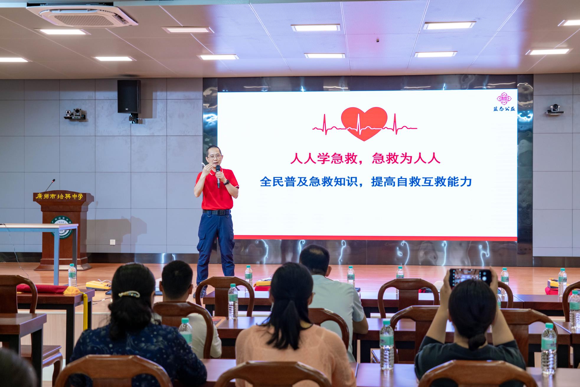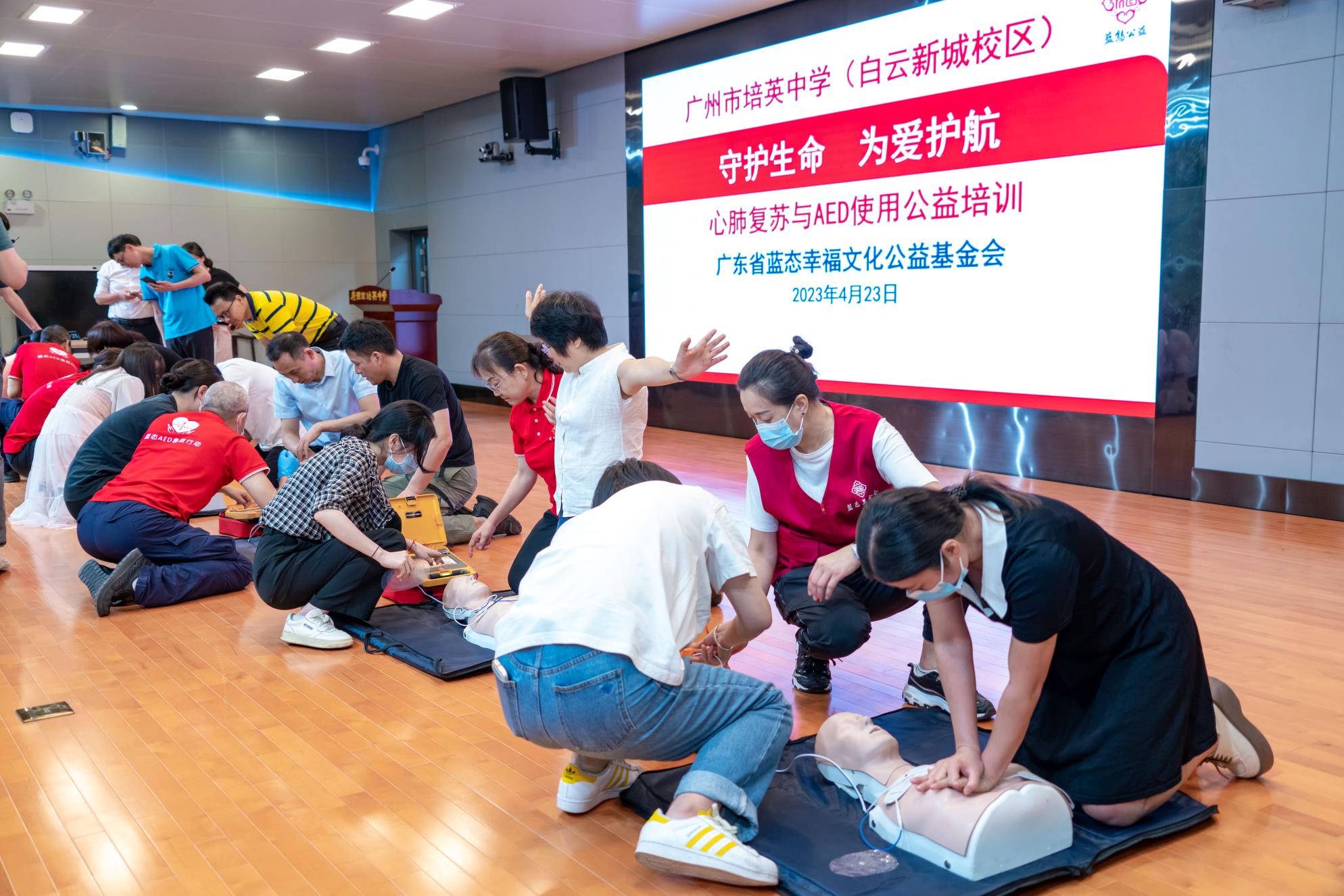 4月23日, 广州市白云区教育局、广东省蓝态幸福文化公益基金会、广州市慈善会在广州市培英中学举办自动体外除颤器(AED)捐赠仪式,首批捐赠白云区10所中学10台AED。这也是蓝态公益首次启动面对中学的AED捐赠。