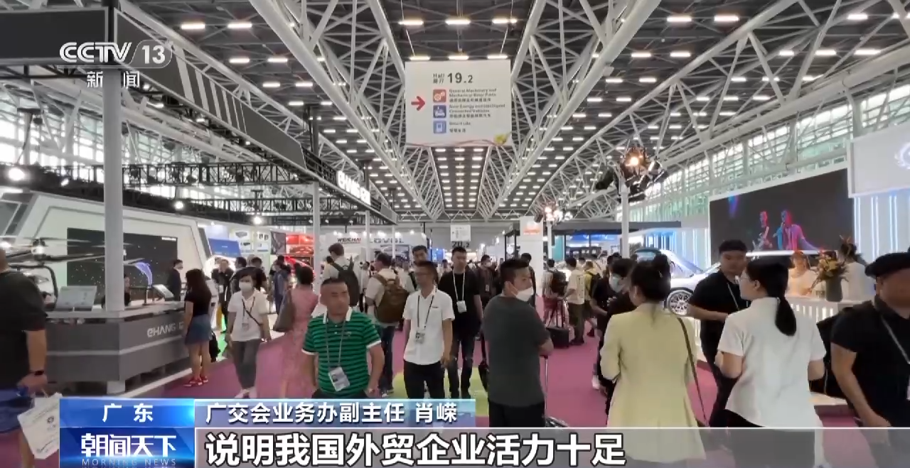 广交会业务办副主任 肖嵘:新展区企业受到大量境外采购商关注,超过20%的境外采购商前往新展区参观,洽谈、成交踊跃,说明我国外贸企业活力十足。
