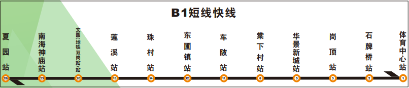 记者了解到,即将试行增设的B1短线快线(特快车)中途仅停靠体育中心、石牌桥、岗顶、华景新城、棠下村、车陂、东圃镇、珠村、莲溪、文园(地铁双岗站)、南海神庙、夏园12个站。