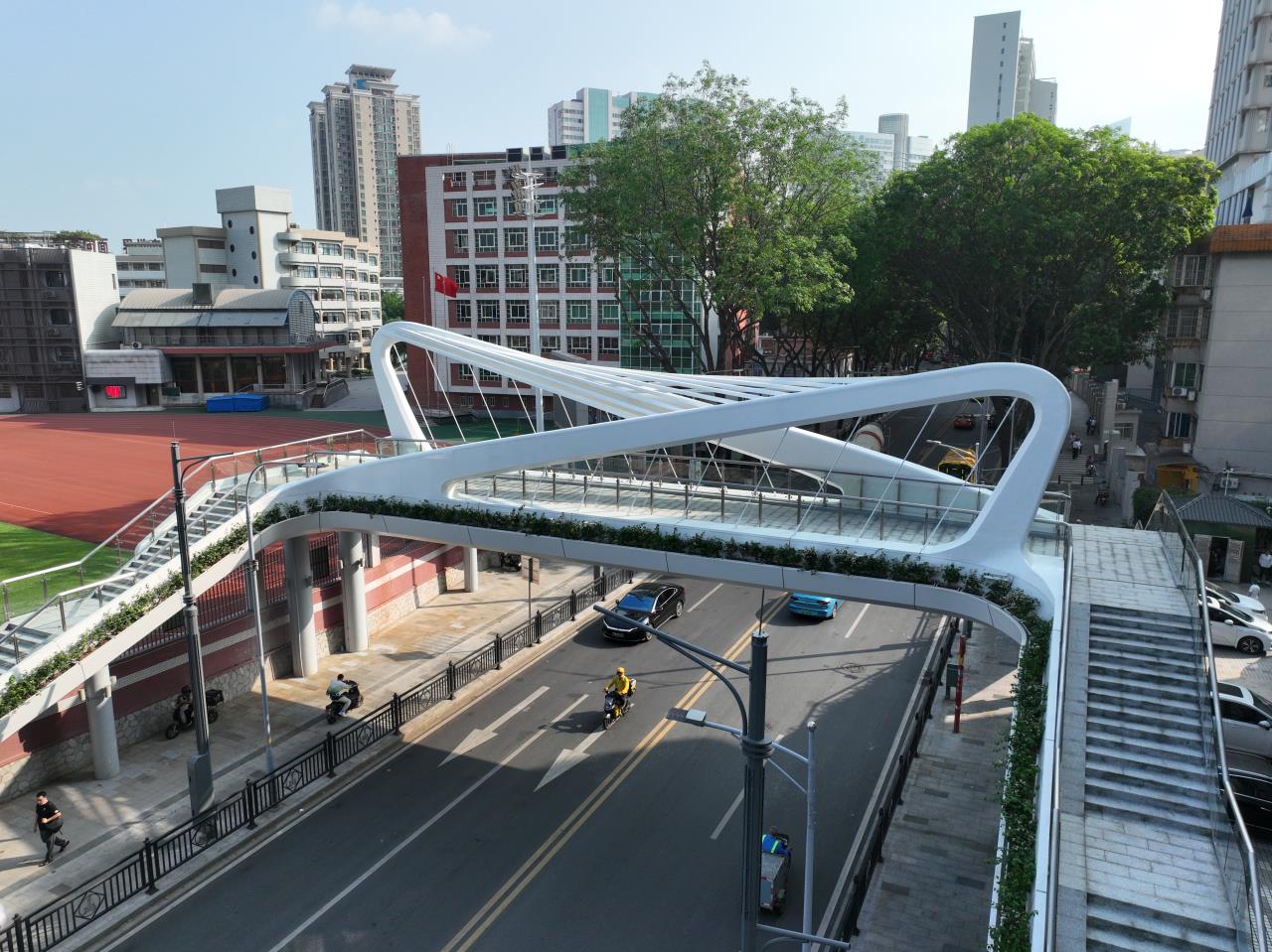 同一天,天河区五山路的一处人行天桥也正式开通,在方便附近居民出行的同时,也为车水马龙的五山路上增添一处亮丽的网红打卡点。