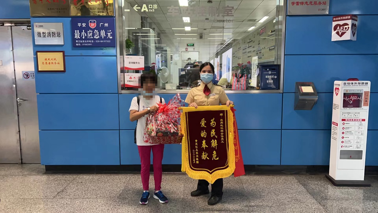 “谢谢你们!那天多亏了你们,我丈夫才能转危为安!”日前,乘客许女士特地带上锦旗来到广州地铁昌岗站感谢工作人员。“为民解危,爱的奉献”的锦旗背后发生了什么?