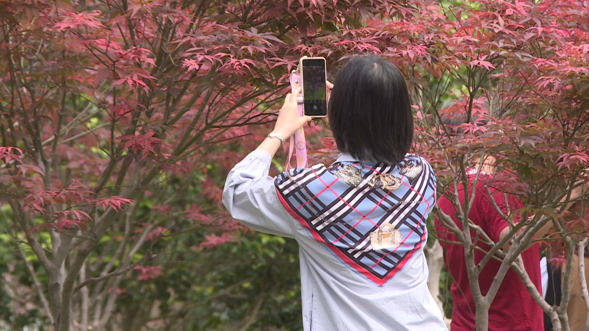 从天河区前来观赏红枫叶的游客刘小燕,已是第四次来这里打卡了,她说:“上一次是去年冬天,和爱人一同来观赏红枫叶,红红火火一片,转了一圈收获了好运气,我想现在是春天,就打算过来看看绿色的叶子,没想到,又是红彤彤一片,很惊讶,也很欢喜!”