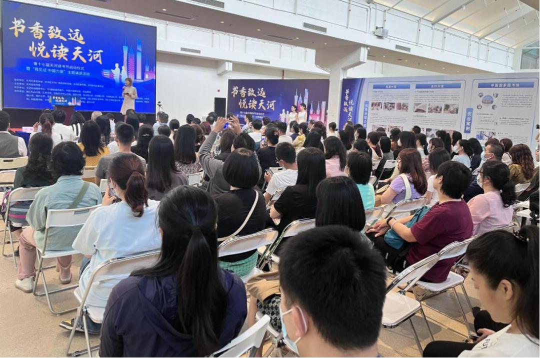 最后,主持人介绍了本届读书节系列活动概况,以及“我见证 中国力量”校园诵读大赛、“读懂天河”全民共参与朗读等主题活动的参与方式。