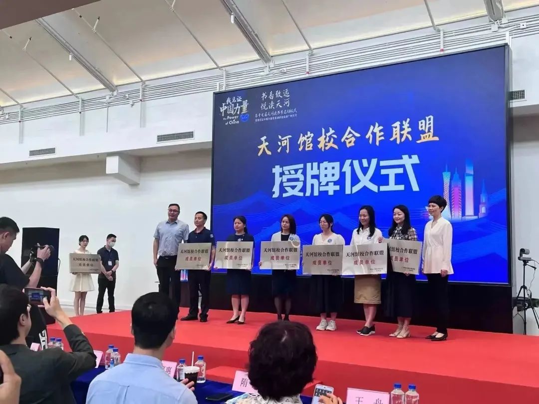 活动现场为天河区馆校合作联盟成员单位进行了授牌。未来,天河区图书馆将更加积极与辖区内中小学开展“馆校合作”,通过主动推送图书馆服务进校园,促进“书香校园”建设,以公共文化服务做“加法”,助推教育“双减”政策落地见效。
