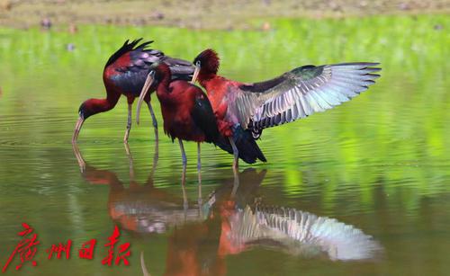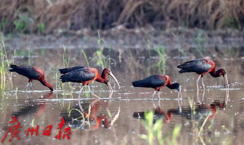 近日,有摄影爱好者在东莞谢岗镇黎村村一稻田新发现5只彩鹮——一度被认为在中国绝迹的珍稀鸟类。这是东莞首次野外监测到国家一级保护野生动物彩鹮,是东莞鸟类新记录。