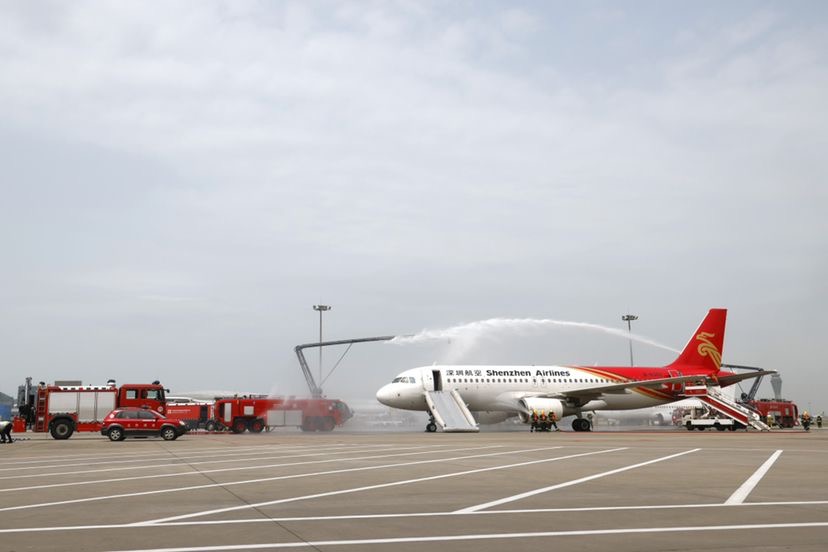 据了解,此次演练由深圳市国资委、市应急局、市交通局主办,深圳机场承办,是近年来规模最大、涵盖环节最全、参演单位最多的一次应急救援综合演练。来自民航深圳监管局、深圳机场、深圳空管站、市急救中心、机场公安分局、宝安区应急管理局、宝安区消防救援大队、宝安海事局、深圳航空、顺丰航空、东海航空、东部通航、承远油料等13家单位共300余人参与演练,演练全过程动用空客A320客机1架,教学训练机1架,医疗救援直升机1架,救援船舶4艘,消防车、救护车、移动安检车等各类应急处置救援车辆50余辆及活动道面、顶升气囊、自主研发的航空器搬移设备等航空器救援专用设备。