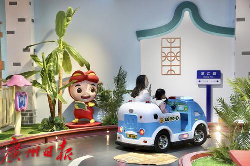 在咏声动画科技馆,展览空间、亲子游乐空间引起现场媒体的兴趣。新颖独特的数字动 画沉浸式互动体验、寓教于乐的动画科普特色,让咏声动画科技馆成为广州新晋动漫文化打卡点之一。该科技馆打造了融合广府文化、岭南特色以及“猪猪侠”“百变校巴”等广州原创IP,以主题场景、汽车驾驶、安全教育等体验为主的沉浸式体验馆,以青少年儿童喜欢的形象、感兴趣的体验方式传播优秀的广粤传统文化。