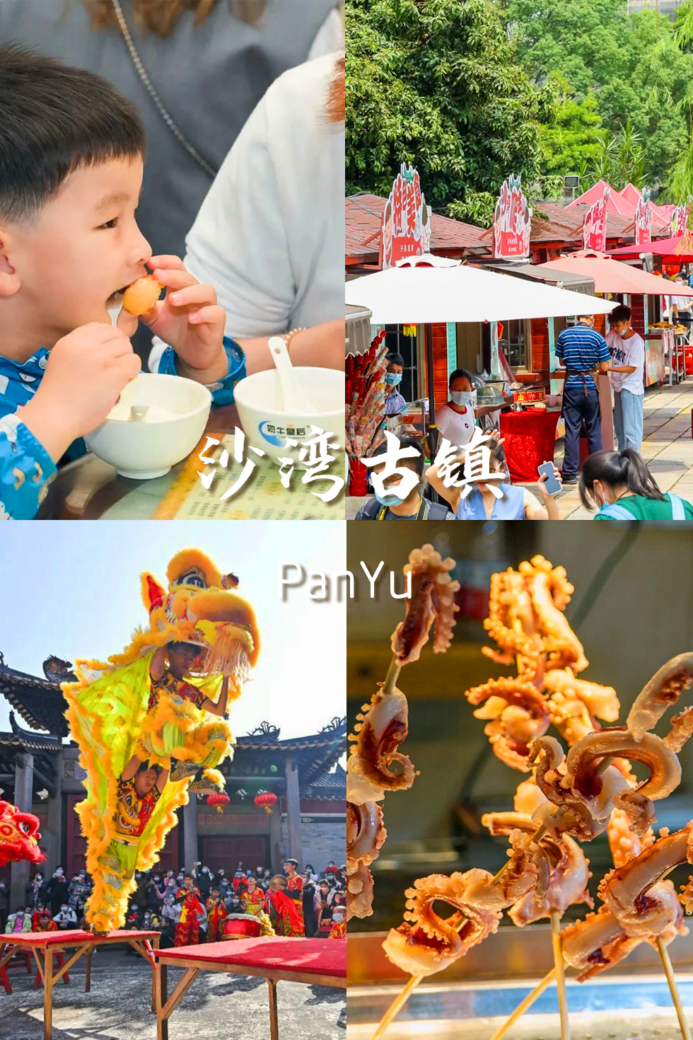特色美食:鸡仔饼特产、现炸番薯饼/虾饼、艇仔粥、鱼皮角、酸腌水果、钵仔糕、双皮奶、姜撞奶、水牛奶、古法黑糖、凉拌鱼皮、手打竹升面、沙湾炸牛奶……隐藏了超多广府地道小吃美食,边吃边逛根本停不下来,让你饱到扶墙走!