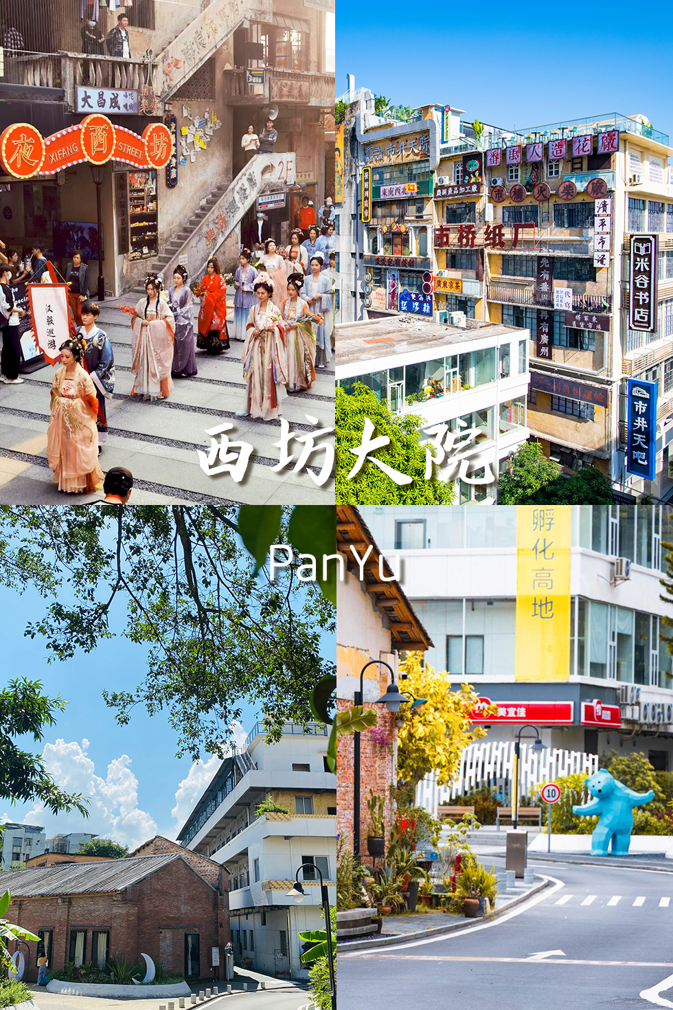 欢迎来到复古的八零年代!西坊大院始建于1958年,前身为番禺区地方国营农副产品综合加工厂,园内保留着苏式历史建筑、改革开放时期的工厂车间和稀有的红砖瓦房群落,充满时代气息。