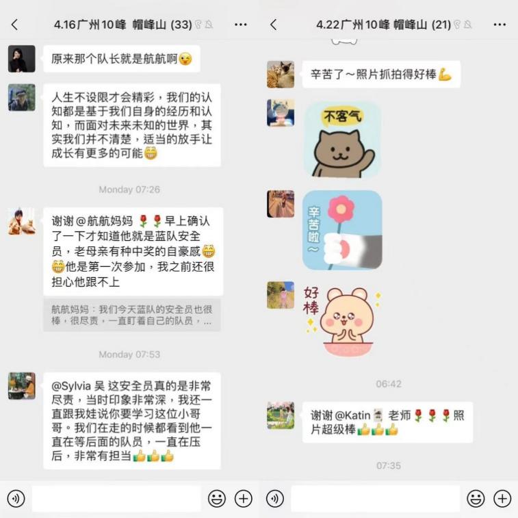 活动结束后,家长们纷纷在群里互动,为老师和孩子们的成功登顶点赞。“我们是爬山,但又不仅仅是爬山。”叶老师感叹道,很多东西都是经历了才会引发大家思考,希望可以创造更多场景与大家一起成长。“广州10峰”挑战仍在继续!让我们共同期待下一次邂逅!