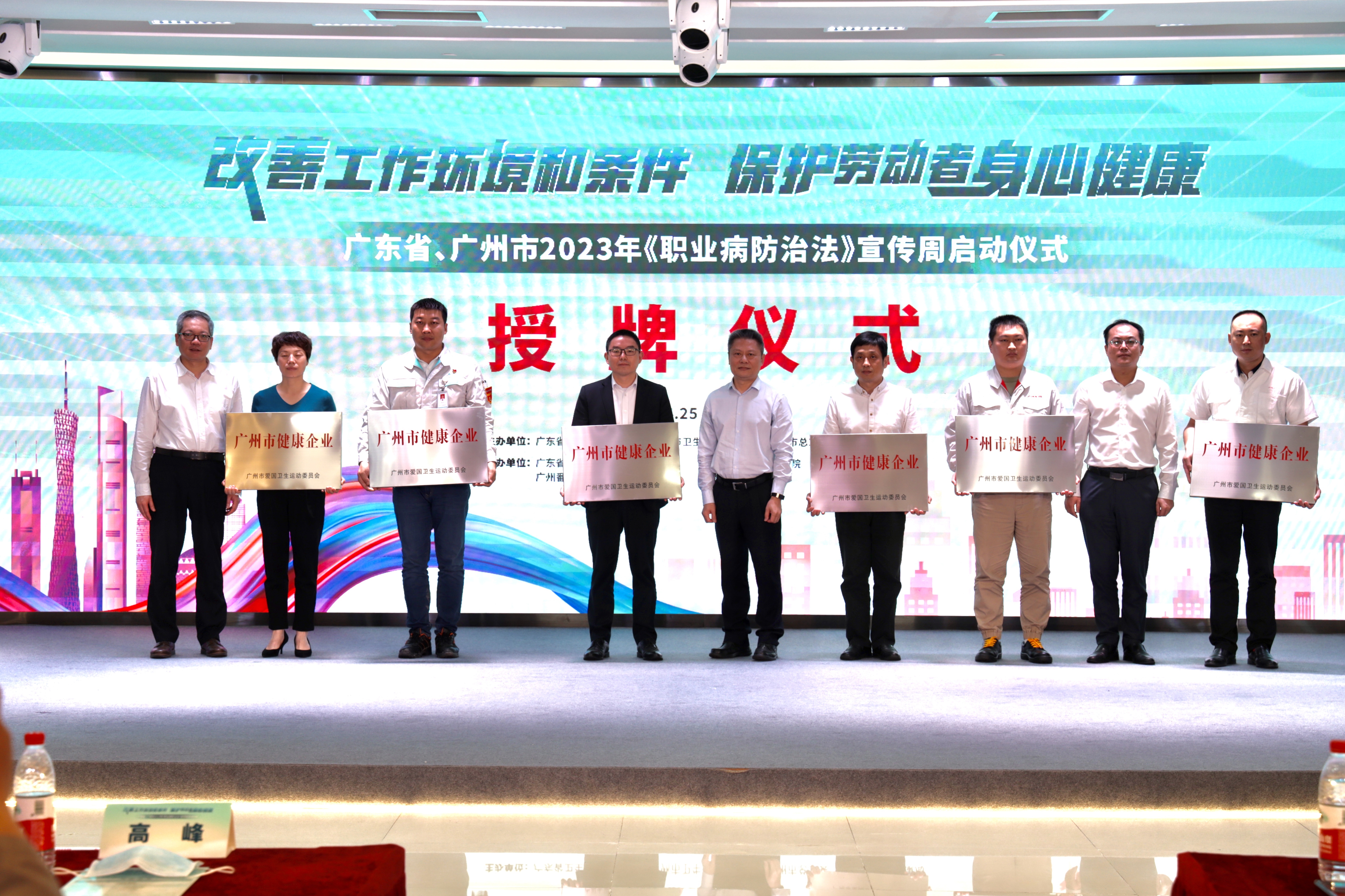 启动仪式上向“广州市健康企业”授牌。