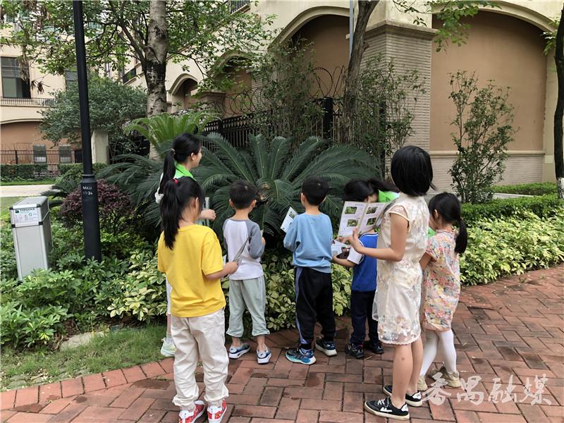在“植物猎人”环节,参加活动的小朋友每人分发一本印有植物图样的寻宝图册,在小区内各处找到植物图册上相应的植物。