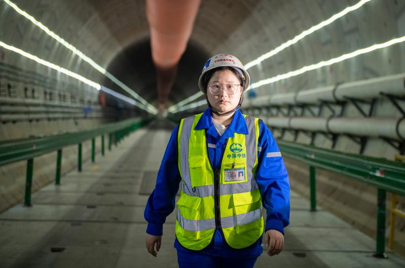 隧道距地面40米,温度比外面高很多,泵电机声不绝于耳。每个工作日,杨涔需要穿过几节拖车,来到掘进隧道最前方的主机室。每次值班时,她至少要在岗12小时,根据各种技术参数,不断提高盾构机的掘进效率,掌控着海底隧道工程的前进方向。