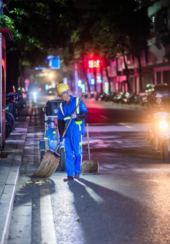 对绝大多数人来说,凌晨3时正是酣睡时刻,但对广州市南沙区南沙街环卫保洁员张贵海来说,在凌晨3时起床开启新一天的工作是常态。今年57岁的张贵海,是一名来穗务工人员。自2007年7月至今,他一直在南沙区南沙街环卫站负责保洁工作,无论寒冬酷暑、刮风下雨,始终默默坚守一线,保障道路干净整洁,为居民群众提供良好的市容环境。
