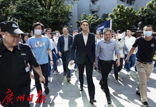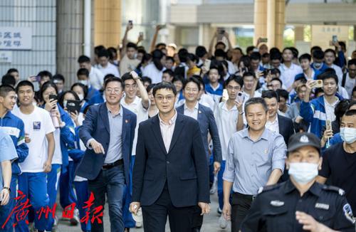 4月26日,罗翔教授在华南师大附中受到师生热烈的夹道欢迎。