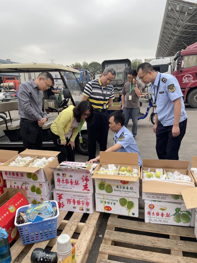 4月24日,白云区市场监督管理局总工程师饶建兵、松洲街道办曹阳副主任带领商标专利科及各部门开展以“新会陈皮”等地理标志保护产品为重点的专项检查行动。检查组一行先后到江南市场、耀亿茶叶城等地开展检查,重点检查了蔬菜、瓜果、茶叶、新会陈皮等地理标志密集型产品,对发现的不规范使用专用标志行为进行提醒和限时整改。