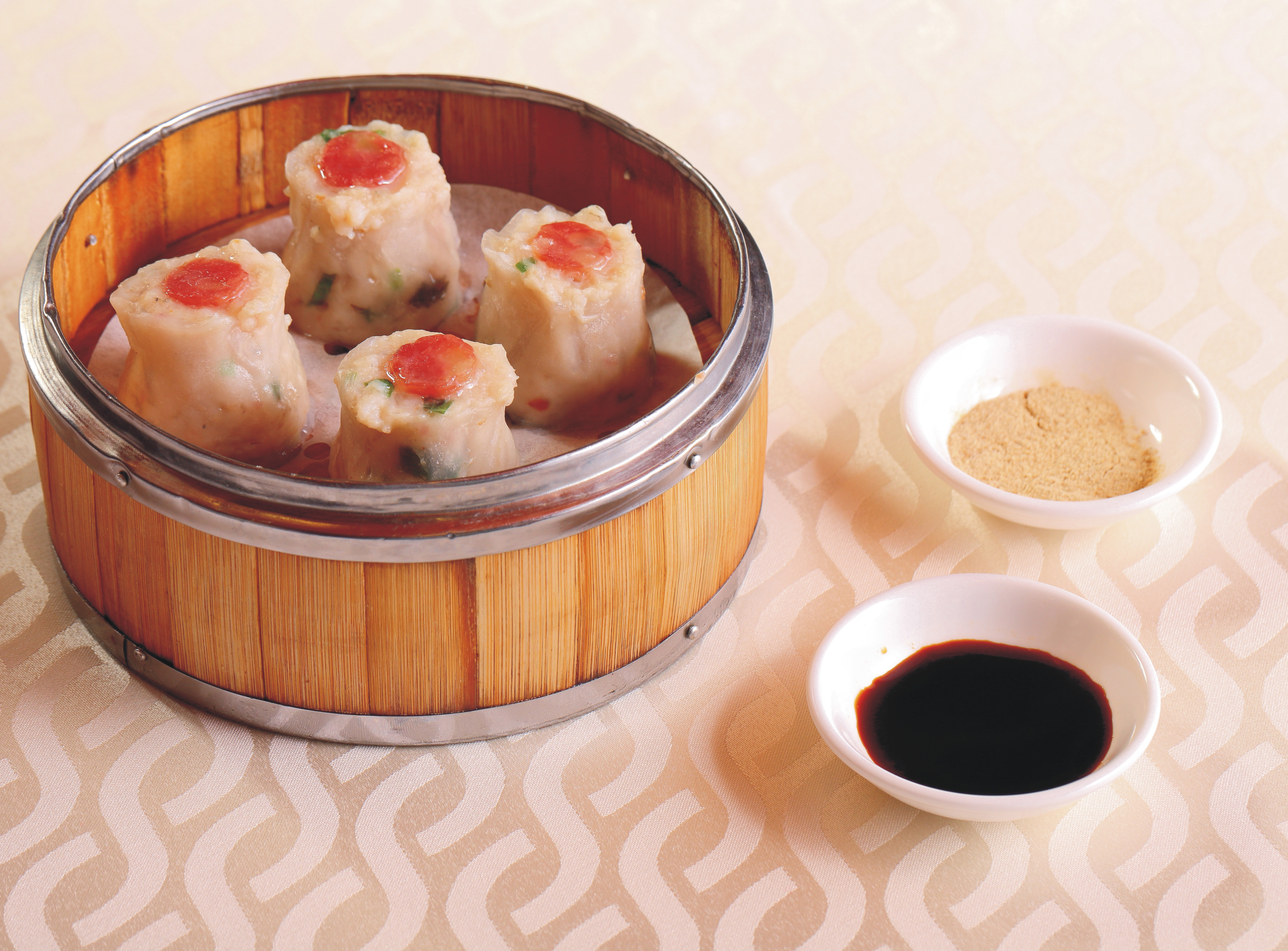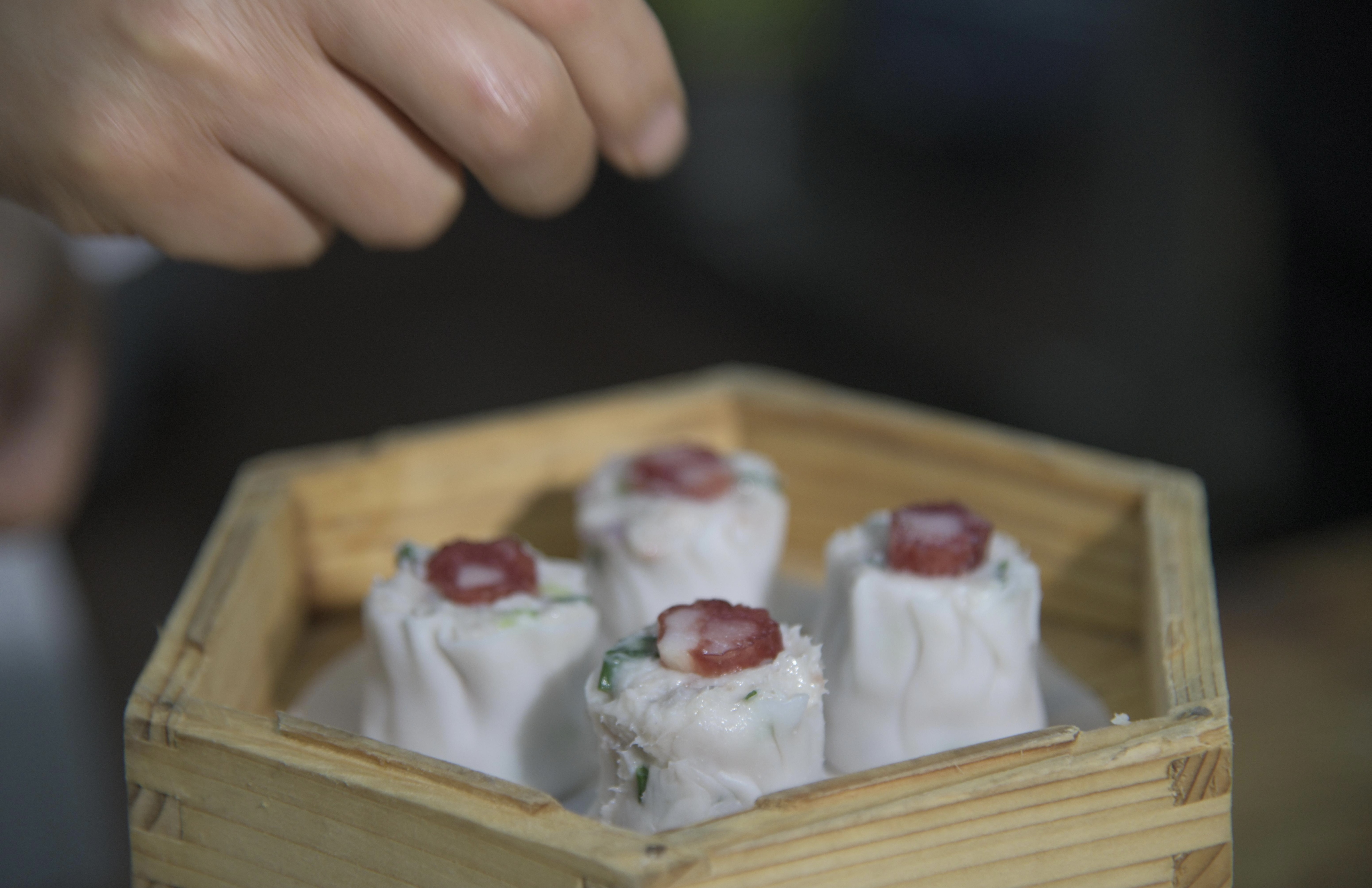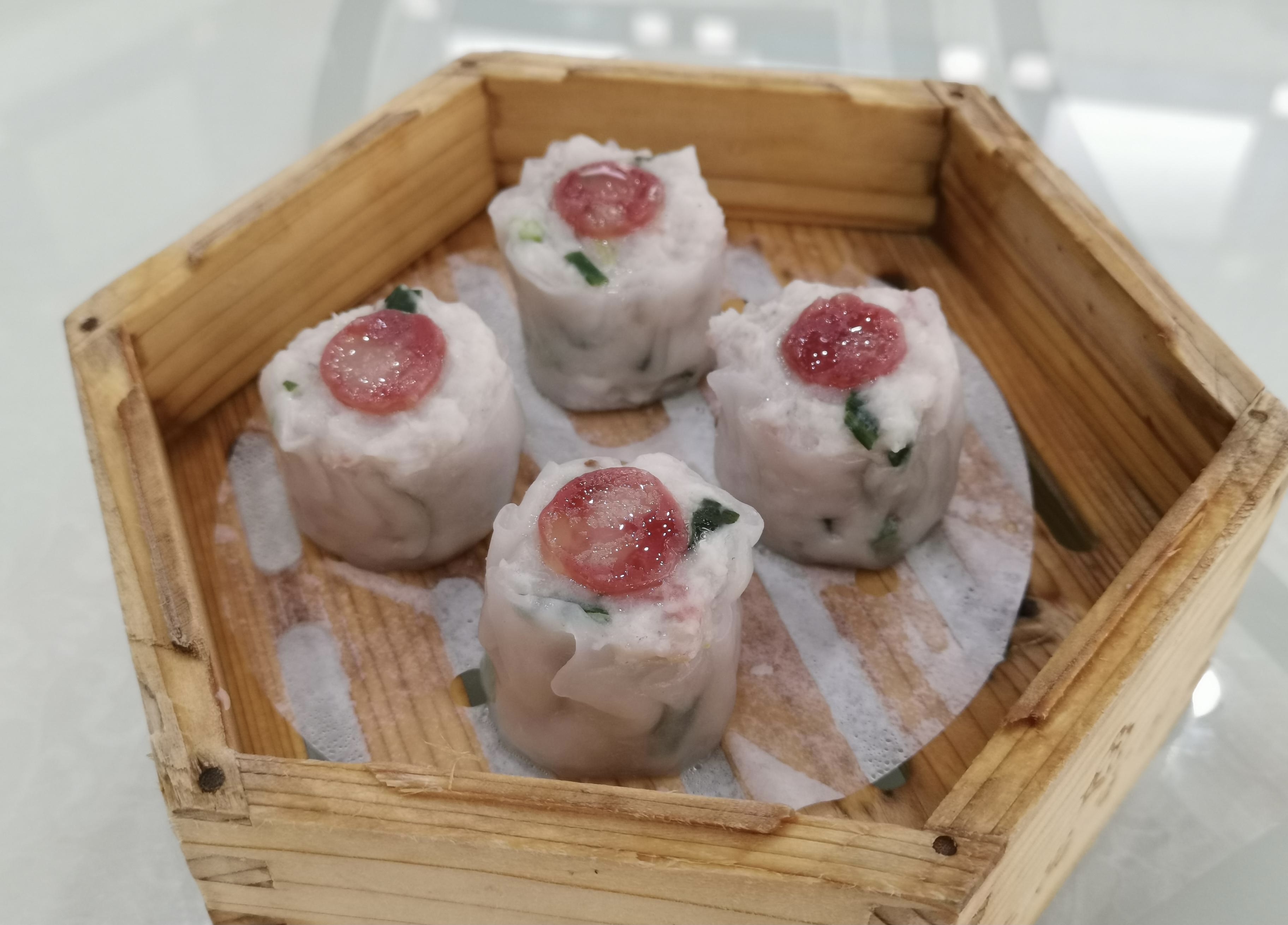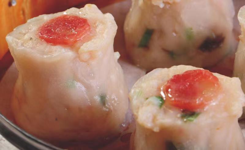 在烧卖上端放置腊肠片是“市桥白卖”的特色