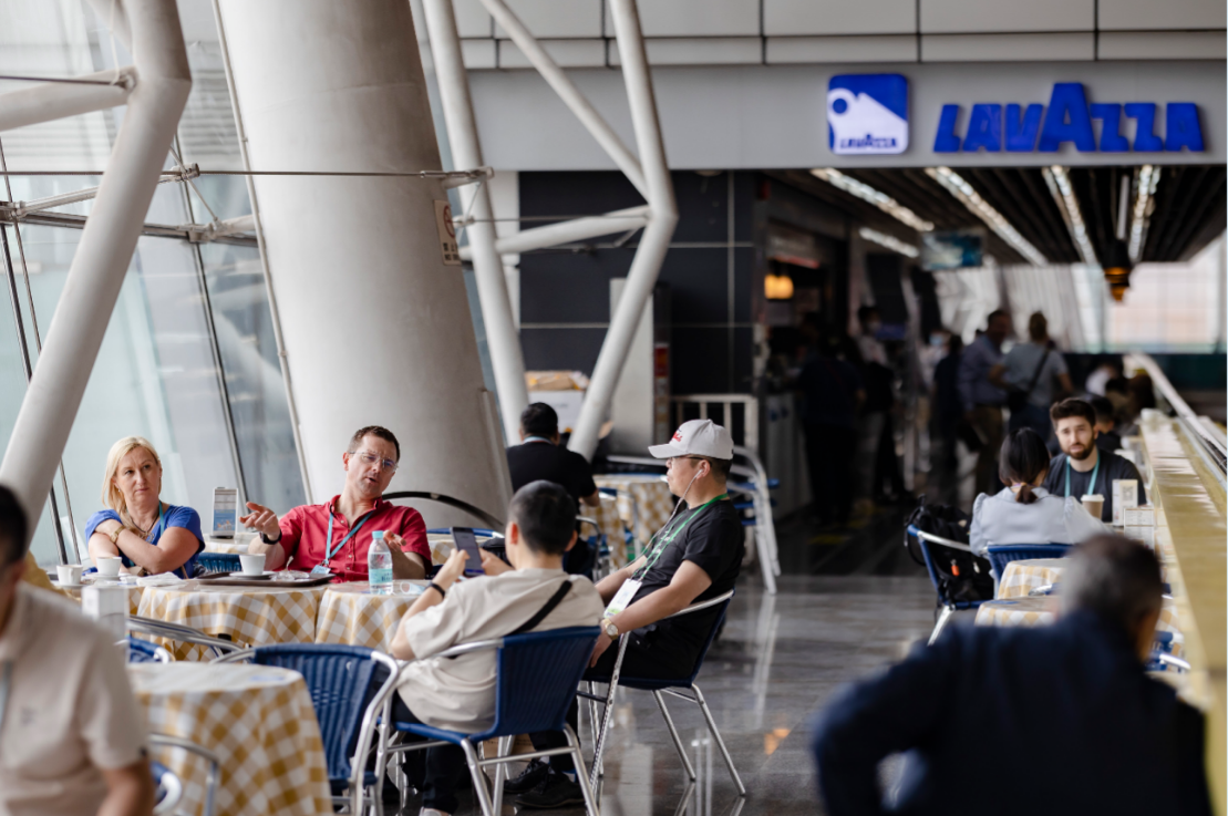 在这里,喝完一杯30元的浓缩咖啡,几千美金、甚至是几百万美金的订单可能就谈成了。线下面对面地聊天,让双方合作情谊不止是纸上的协议和一串串数字。迎来送往之间,热络的寒暄和开怀的大笑,让人与人之间的交情,有了更深的联结。