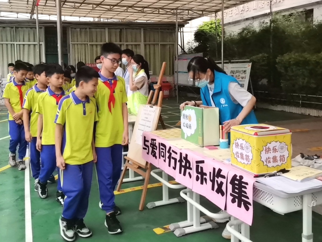 加强未成年人心理健康建设是健康中国的重要内容。4月24日,荔城街社工站服务站还在荔城街第三小学开展一场面向全校学生的“与爱同行,快乐收集”心理健康游园活动。小学生们在游园摊位中选取了代表自己心情的卡牌,“姐姐,给我一张纸,我也要写烦恼,扔进去。”