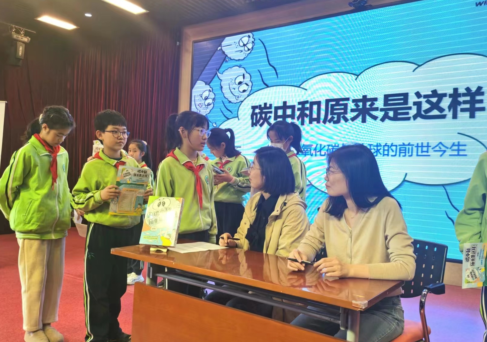 截至发稿,《碳中和原来是这样!》已于4月13日、4月14日、4月21日分别在北京市史家实验学校、东四九条小学、校尉小学亮相,其作者孙倩倩、李宁给学校的小朋友们带来了“了解碳中和:揭秘二氧化碳与地球的前世今生”讲座,活动现场气氛高涨,小朋友们踊跃参与。活动中,孩子们就讲座内容提出了各种问题,如“碳中和是什么”“为什么要实现碳中和”“未来碳中和时代是什么样的”“二氧化碳是好是坏”等。作者在耐心解答问题后,还与在场的小学生们进行了热烈的互动,一起体验了书中的碳中和小游戏——“计算我一天的碳积分”。这三场活动引发了热烈反响,参加活动的孩子们纷纷表示,要回家跟爸爸妈妈分享活动中学到的环保知识。