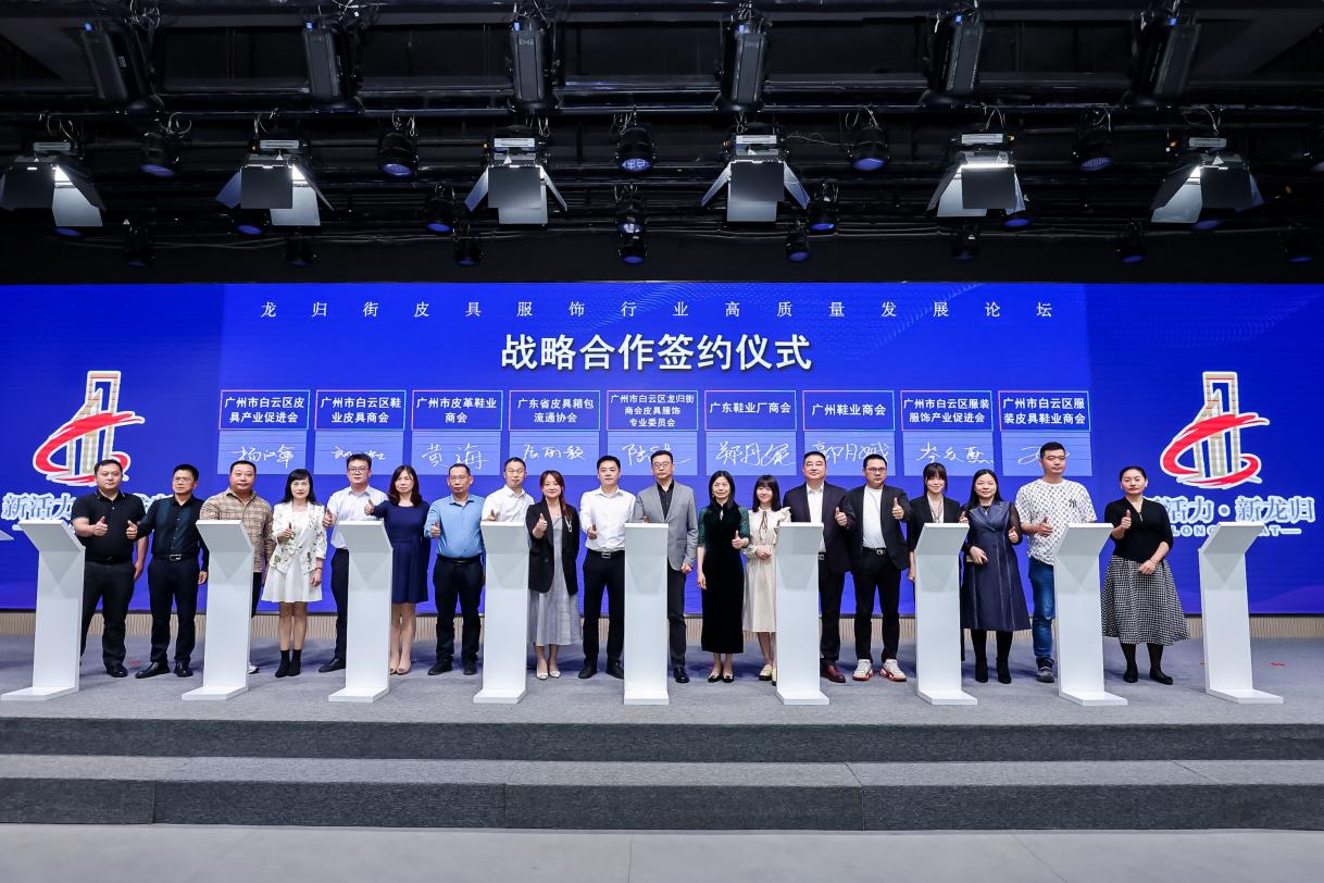 广东省皮具箱包流通协会、广东鞋业厂商会、广州市皮革鞋业商会、广州鞋业商会、广州市白云区鞋业皮具商会、广州市白云区皮具产业促进会、广州市白云区服装服饰产业促进会、广州市白云区服装皮具鞋业商会、广州市白云区龙归街商会皮具服饰专业委员会等9个协会成功签订战略合作协议,开启紧密互动和友好合作,共同推动营商环境优化,助力经济高质量发展,为加快白云建设老城市新活力和“四个出新出彩”的高质量发展中心城区作出龙归贡献。