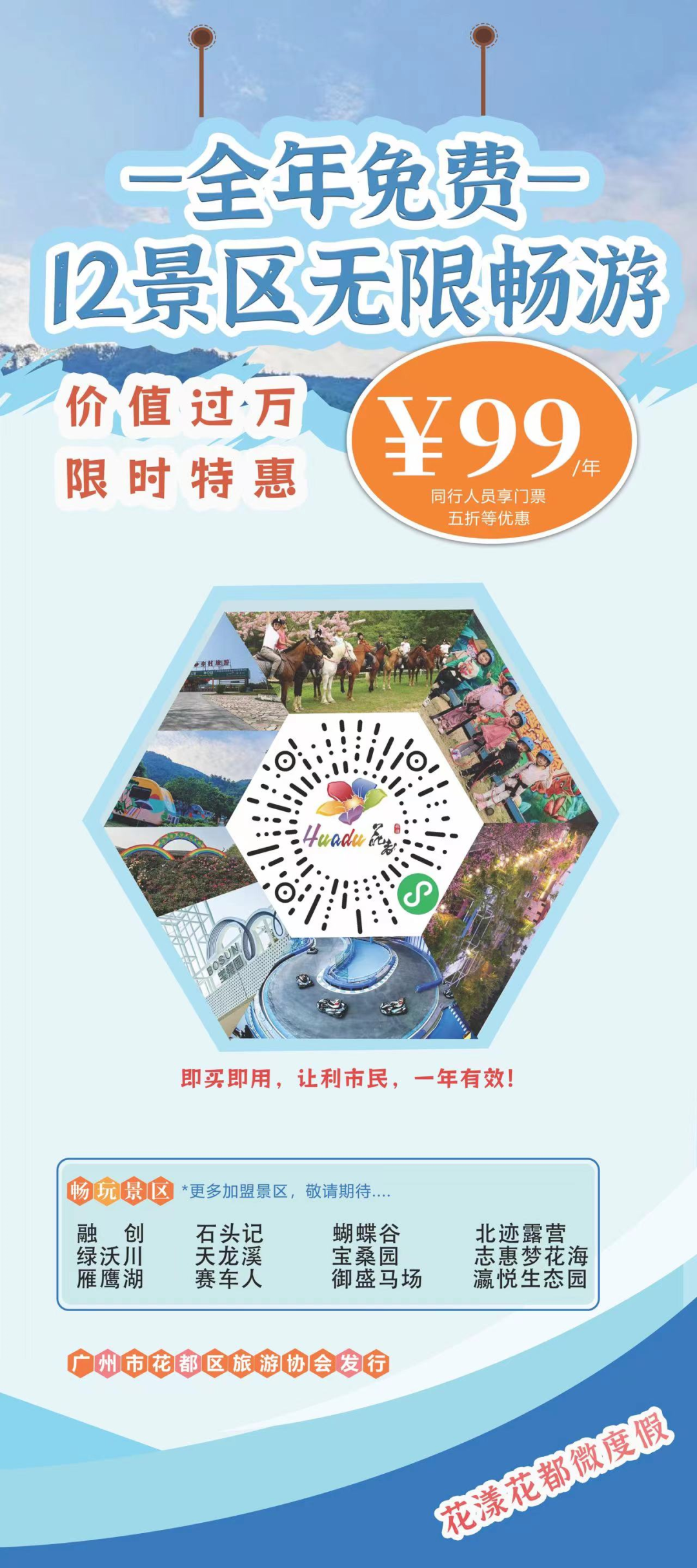 “惠游花都”惠民活动,由花都区旅游协会组织,发行景区联盟惠民卡,99元畅玩花都12家旅游景区,同行人员也可享受折扣优惠。此外,区内各文旅企业也纷纷推出30多项旅游优惠活动,带动旅游消费。