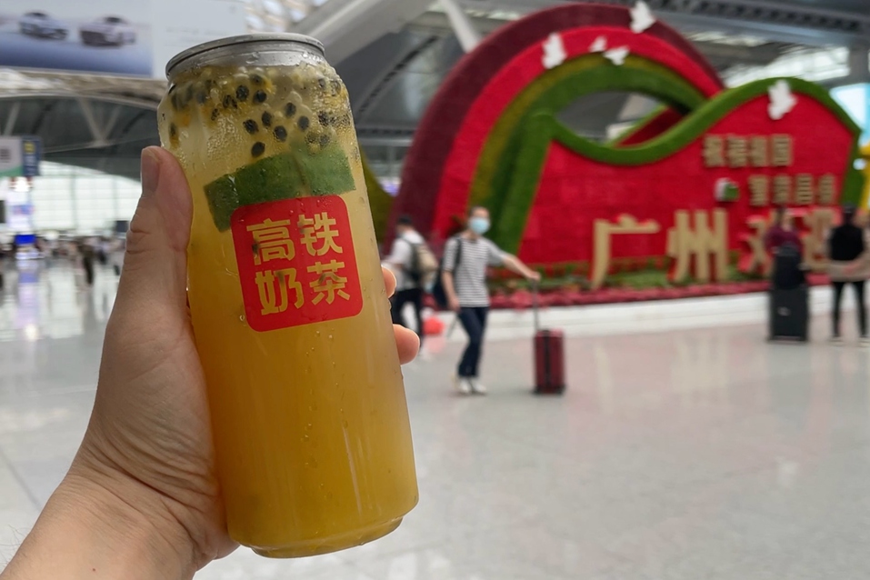列车上,广铁动车组餐饮公司已经推出12306网络预订配送服务,乘车旅客扫描高铁列车座椅扶手上的铁路“畅行码”点单,“那个女孩”高铁奶茶就能送到旅客的座位上。“只要动动手指,旅客就能随心品尝到我们的高铁奶茶夏季饮品!”李曼伊介绍。