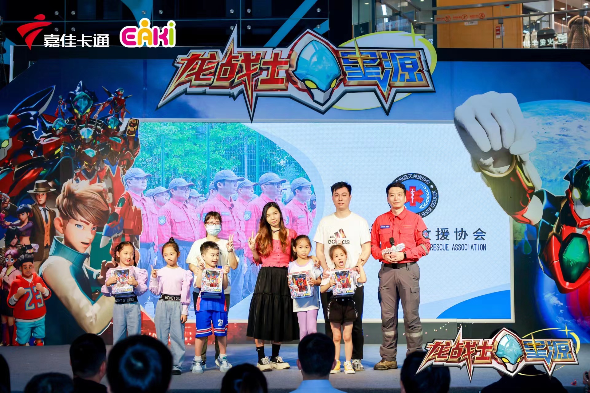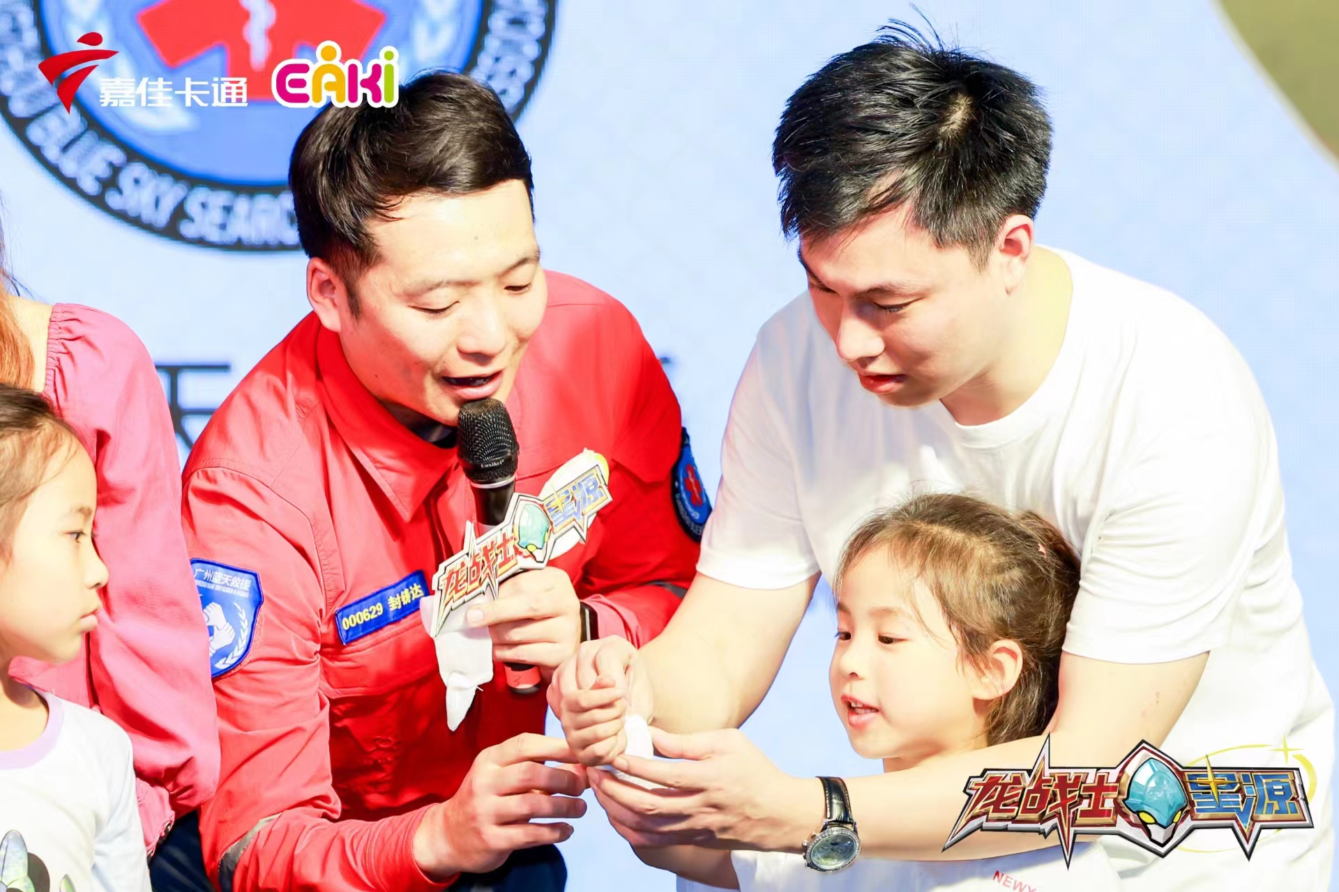 令大家感到非常惊喜的是,生活中我们身边的英雄“龙战士星源”特别嘉宾——蓝天救援队,也来到现场助力新片首发。他们是经常承担各种城市、水域搜救任务的专业队伍,为小粉丝们展示了很多关于自救、急救的专业知识,让大家更好地懂得“爱与守护”的真正含义。