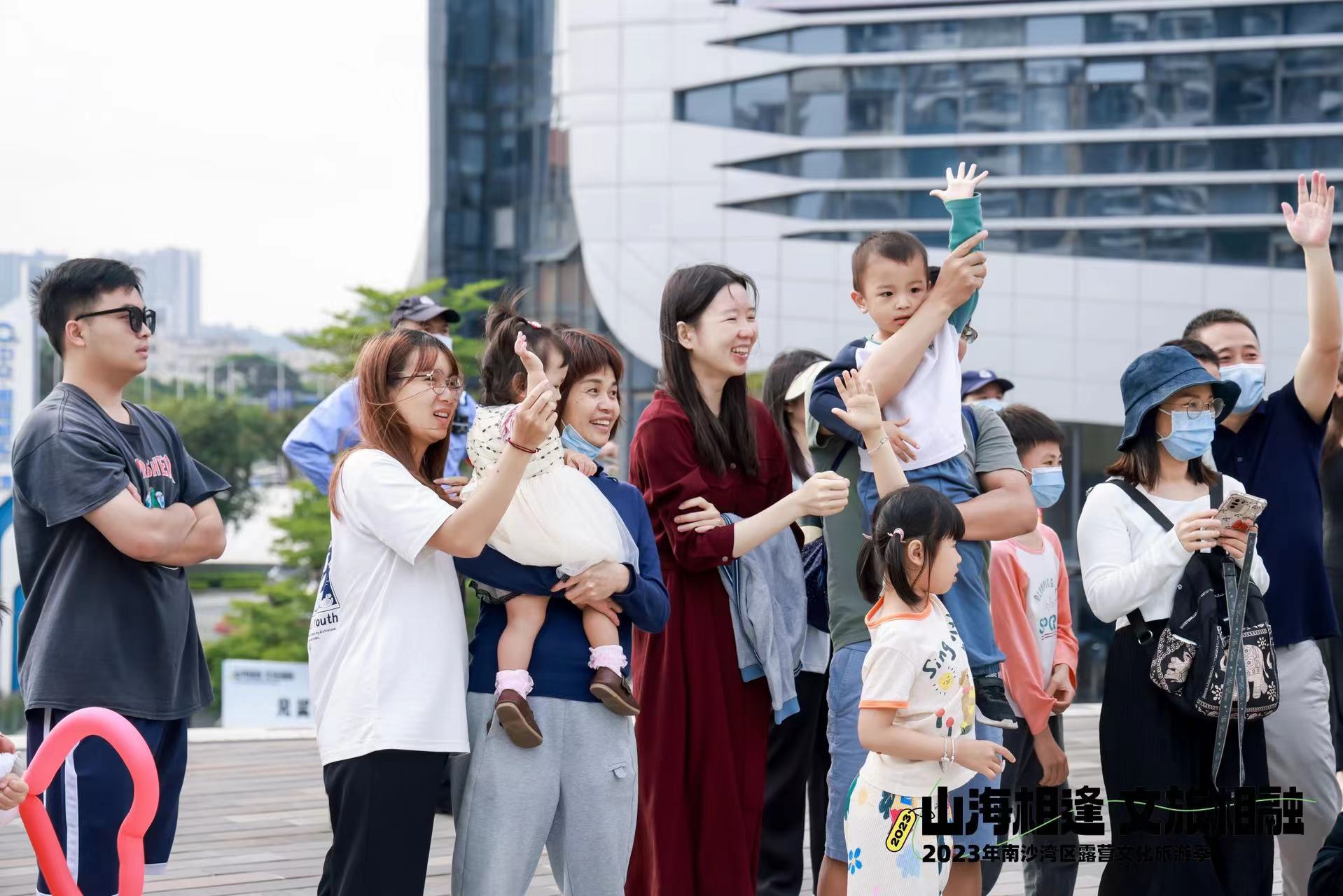 天幕下,市民游客品尝着南沙、从化的美食和特产,体验着休闲桌游游戏;乐队伴随着习习海风动情演唱;自行车杂技表演、泡泡秀引发一浪又一浪欢呼声;车尾箱市集、文创摊位前人头攒动、热闹非凡;趣味十足的互动游戏和网红创意打卡区更是引发市民游客打卡,层出不穷的活动内容一次次将现场气氛推向高潮。