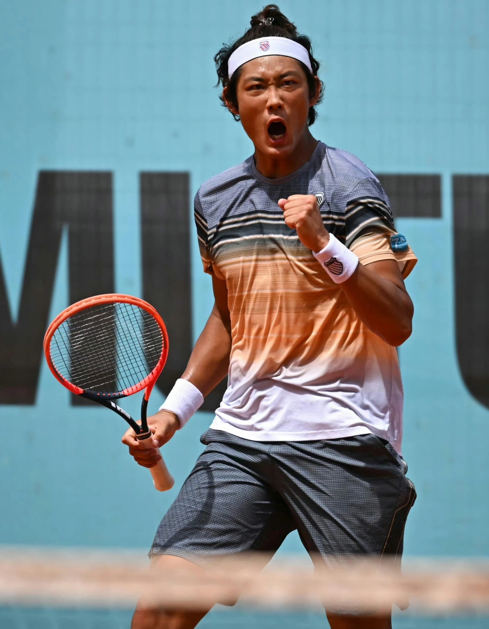 次轮过关后,他再接再厉,在先失一盘的情况下顶住压力,最终以6比7(4)、6比4、7比6(1)的比分逆转获胜,成为首位在红土巡回赛正赛中斩获两连胜、首位晋级ATP1000大师赛32强的中国男网球员。