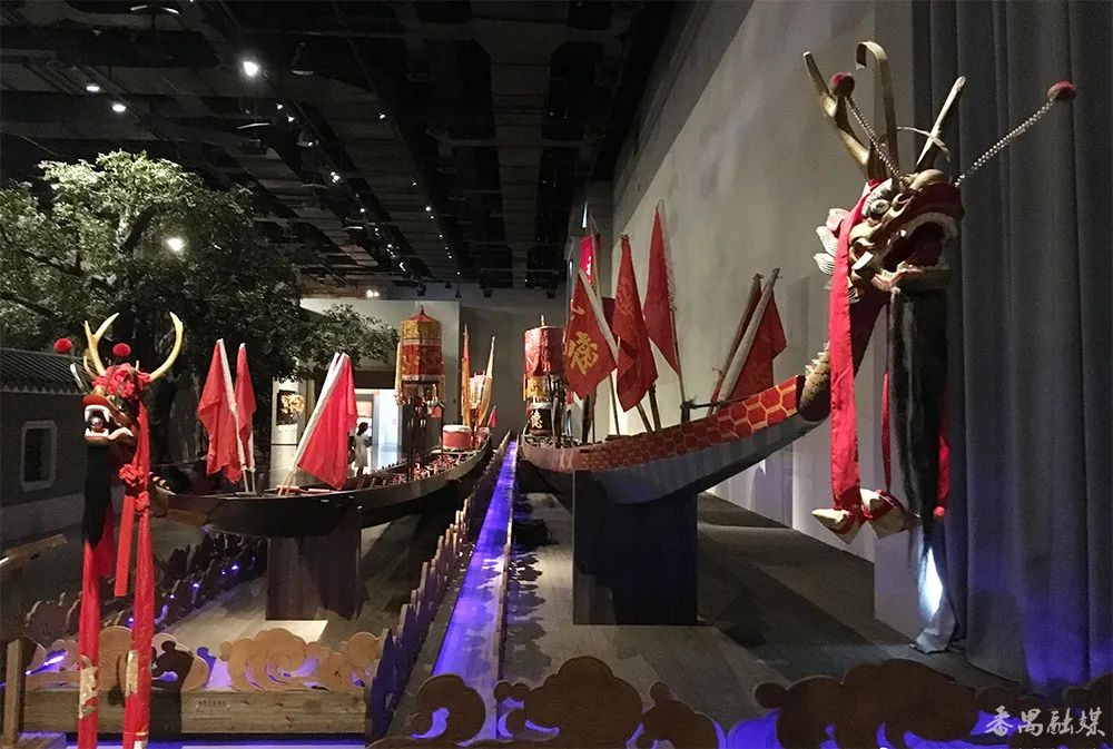 在广东省博物馆四楼的历史文化陈列展厅,陈列着两条狭长的“巨龙”,各长40多米,一条全身乌黑,叫棠下黑龙,一条红色为底,船身画满杨桃、荔枝等猎德出产的水果和八仙过海的图案,是猎德村独有的“花龙”,“猎德花龙”曾在1998年、1999年、2004年的广州国际龙舟邀请赛夺得传统龙冠军,是名副其实的“冠军龙”。