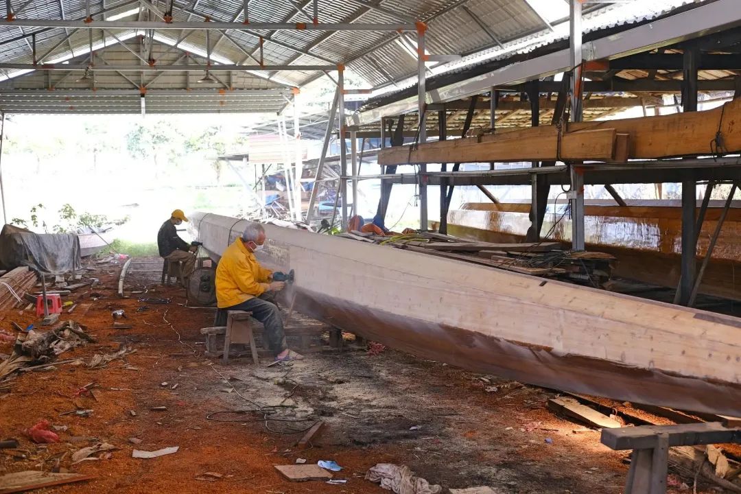 “我太公黄寮引入了榫卯结构的家具制作工艺,就是用物件的凹凸部位进行加固,不使用钉子,这样船体更牢固,也体现了中国古老的文化和智慧。而且用料方面采用了之前一直用来做高档家具的坤甸木,坤甸木产自马来西亚热带雨林中雨水最盛的地方,具有越泡越结实的特点,所有现存的百年老龙基本都是坤甸木做成。”黄剑挺说。