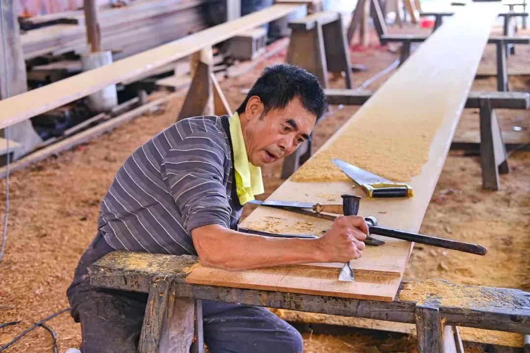 “做龙船有一种神圣感,村民们会对你发自内心地尊敬,很有人情味,这是我在其他行业不曾体会的。”黄剑挺享受这份荣耀,也是他十多年来兢兢业业精心打磨龙舟技艺的精神动力。