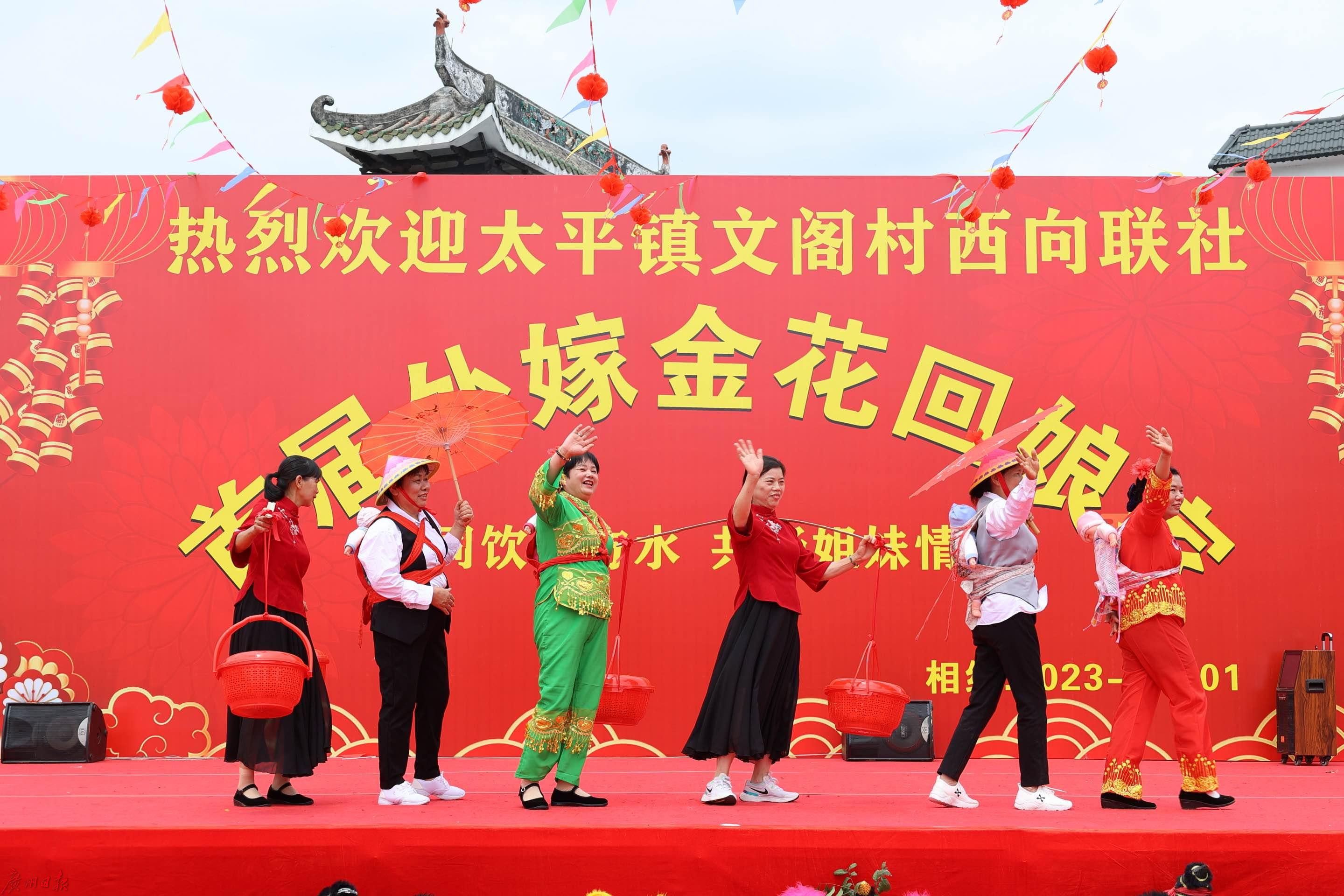 外嫁女身着统一服装,挑着猪肉、土鸡等美食返回家乡感恩父母。娘家用醒狮队迎接外嫁女回家,现场喜气洋洋、锣鼓冲天、热闹非凡。这些外嫁女整齐有序穿过大街小巷进入古村鱼塘榕树头,交接篮子,经过庚楼齐聚广裕祠拜祭祖籍,弘扬热爱家乡的中华传统美德。念亲恩,传孝道。活动中,外嫁女给长辈敬茶,弘扬孝敬长辈,感恩长辈的中华传统美德。外嫁女和娘家人欢聚一起拉家常,谈变化感受着村里的各种变化。下午的文艺活动节目,丰富多彩。歌声优美,舞姿婀娜,娘家人和“外嫁女”齐齐上台表演节目,精彩的演出不时赢得台下掌声不断。主办方有关负责人说,通过这次活动,让出嫁到外地的女性更有归属感和凝聚力,维系出嫁女性与娘家乡村的情感桥,不但增进了全村兄弟姐妹的情谊,更把乡情乡愁转变为助推家乡发展的动力。