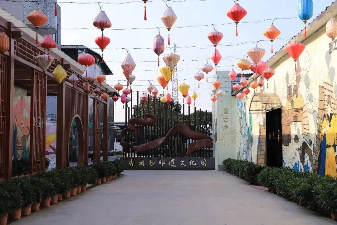 位于广州市南沙区榄核镇湴湄村星海故里,景区分设一期、二期,总面积约115333平方米。景区将生产、研发、销售、研学、旅游相结合,设立了香云纱文化馆、香云纱非遗体验馆、科普馆、香云纱研发中心、香云纱销售中心、多功能会议室(T台)、室外舞台等。在景区内,可以通过影像、图文、3D情景、实物等沉浸式体验香云纱的前世今生;在体验馆可以亲自体验香云纱过泥这一道工序,感受香云纱变黑的秘密;在生产工作坊可以看到丝绸胚布如何经过三蒸九煮十八晒,如何蜕变为美丽的香云纱。