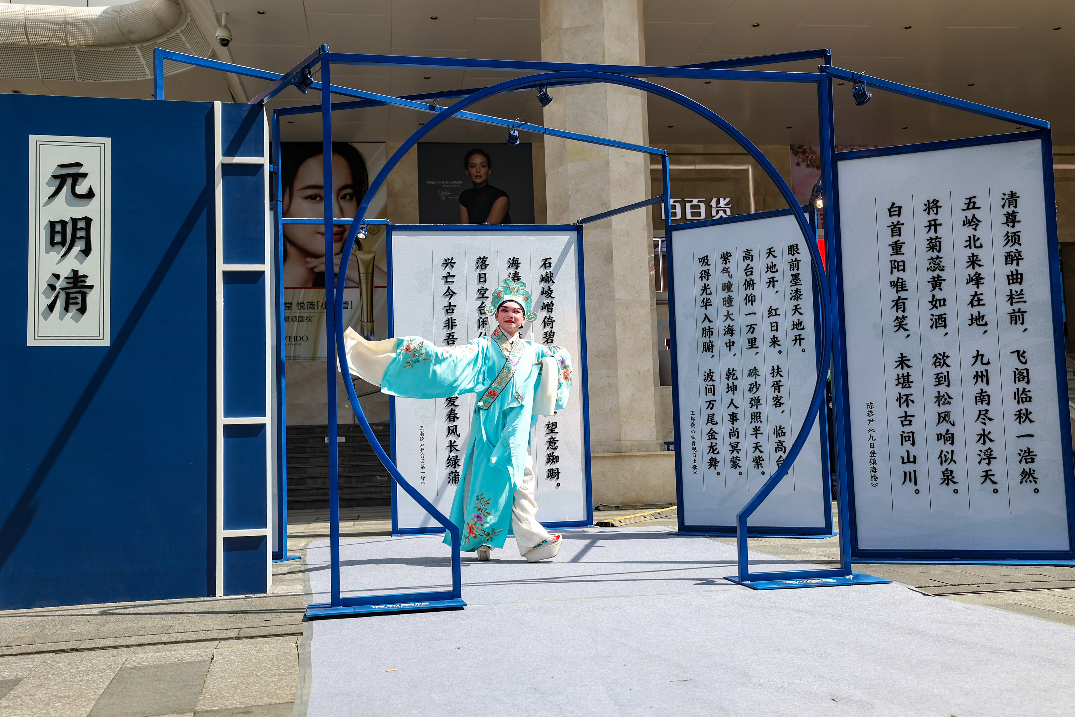 现场一个小朋友告诉记者,“每个阅读场景,选取了对应时期的代表性名篇名作,一篇篇朝代名篇,让我真的有穿越的感觉!”。在每个装置前,现场举办的特色展演也吸引了很多观众,各时代的经典文学与乐器,配合舞蹈、情景剧等形式,现场呈现出千年文道书香满城的盛景。