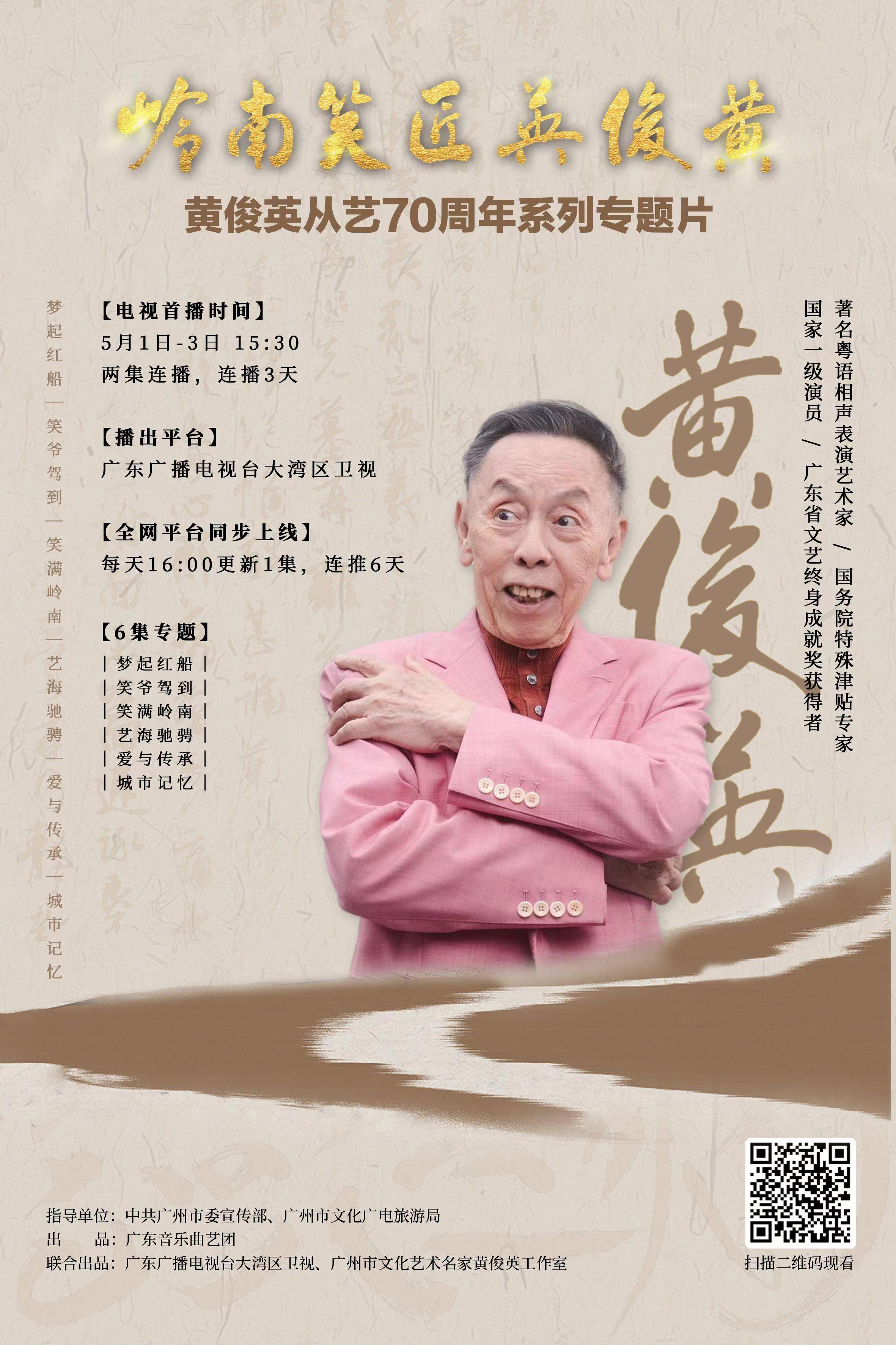 《岭南笑匠英俊黄——黄俊英从艺七十周年系列专题片》于5月1日起在大湾区卫视全球展播,并以短视频的方式,在各大网络平台上线。专题片围绕“梦起红船”“笑爷驾到”“笑满岭南”“艺海驰骋”“爱与传承”“城市记忆”六个篇章展开,以黄俊英亲身口述的专题记录形式,展现其心路历程。