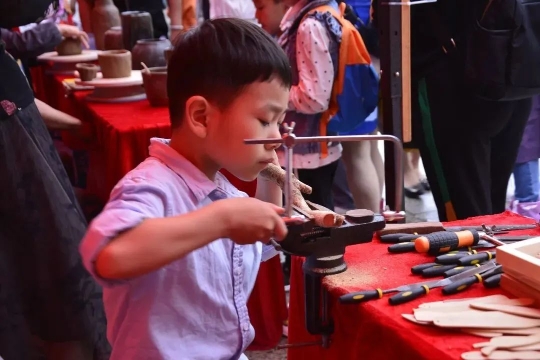 揭牌仪式后,现场还举办了2023年清远市清城区“非遗文旅 传承共享”非遗进景区公益活动,召集了袁氏根雕、龙塘陶缸烧制技艺、仓前街糖水制作技艺等多个非遗项目现场展示,在非遗集市中,游客不仅可以看,还可以体验制作过程,全方位感受非遗文化的魅力。