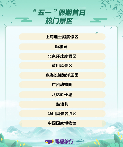 同程旅行数据显示,“五一”假期首日亲子类景区在国内景区榜单前十中占据半数,上海迪士尼度假区是国内搜索热度最高的景区。此外,适合亲子游的北京环球度假区、珠海长隆海洋王国、广州动物园、中国国家博物馆等景区也进入榜单前十。