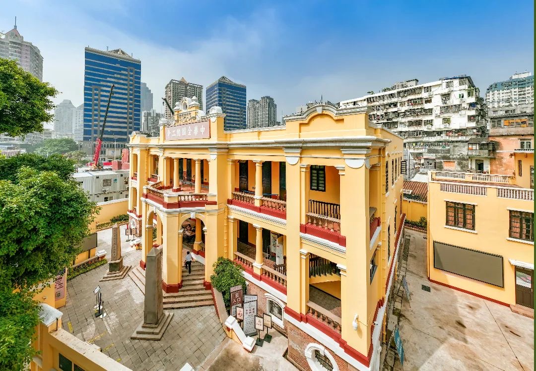 旧址由左右两栋西洋式建筑组成,浅黄色外墙与砖红色牌匾,外观朴实而典雅。