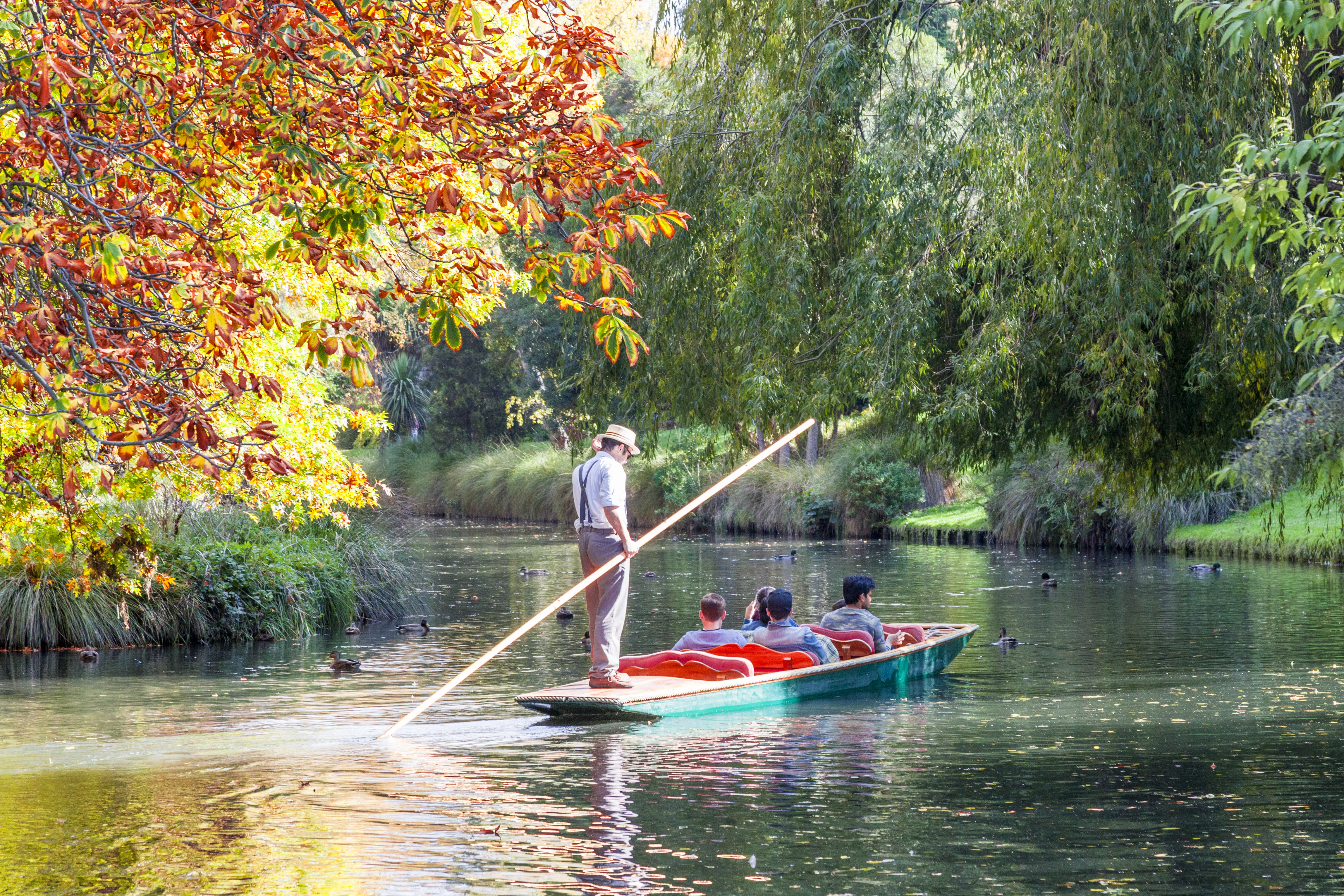 在基督城,在静静流淌的雅芳河上泛舟也是代表性必玩项目之一。与英国的牛津和剑桥撑篙泛舟相同,技巧娴熟的船夫仅靠滑动一根篙推动没有龙骨的平底船前进。阳光安静地洒在波光粼粼的河面上,沿途可以欣赏垂岸的杨柳和美丽的基督城植物园 ,眼前是不断变化的市区风景,闲适的游览方式让人心旷神怡。