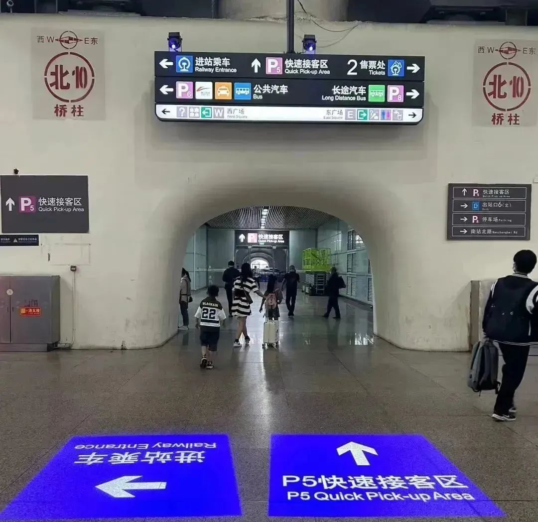 重点提醒:P1、P5、P3是快速接客区,实施阶梯式收费(前10分钟免费),勿在此长时间停车,请留意现场收费公示牌。目前到广州南站接站最方便的是使用南站南路的P1快速接客区和南站北路的P5快速接客区。