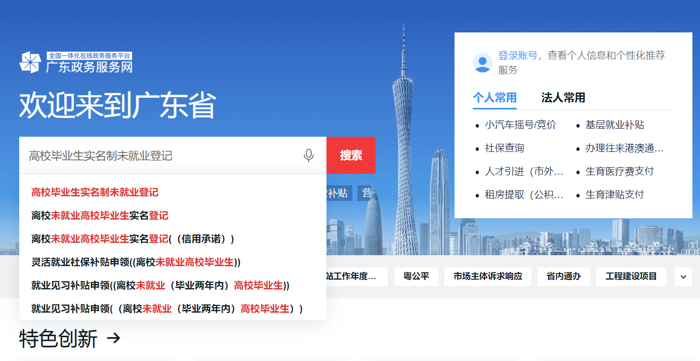 相关人员可关注“赢在广州 招工就业”微信服务号,关键词回复“未就业登记”获取办理入口,点击公众号回复的链接,进入广州市政务服务—广东政务服务网,搜索“高校毕业生实名制未就业登记”。(建议在PC端打开网址)